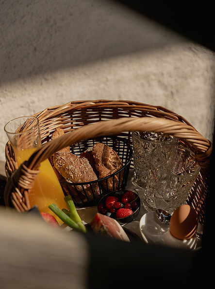 Ogni mattina prepariamo per voi un cesto della colazione con tanti prodotti freschi e gustosi, che vi porteremo direttamente nel vostro alloggio. Cosa c'è di più bello di alzarsi, non dover pensare a nulla e godersi il panorama sorseggiando una tazza di caffè caldo ancora in pigiama?